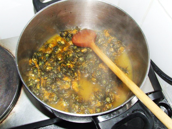 Dans les leçons, on prépare régulièrement des extraits à l'huile. Ils servent de base pour les huiles de massage et les pommades et les crèmes.